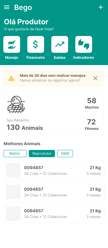 Registre eventos, receba alertas e acompanhe o desempenho do seu rebanho com relatórios automáticos mesmo sem internet na fazenda.
